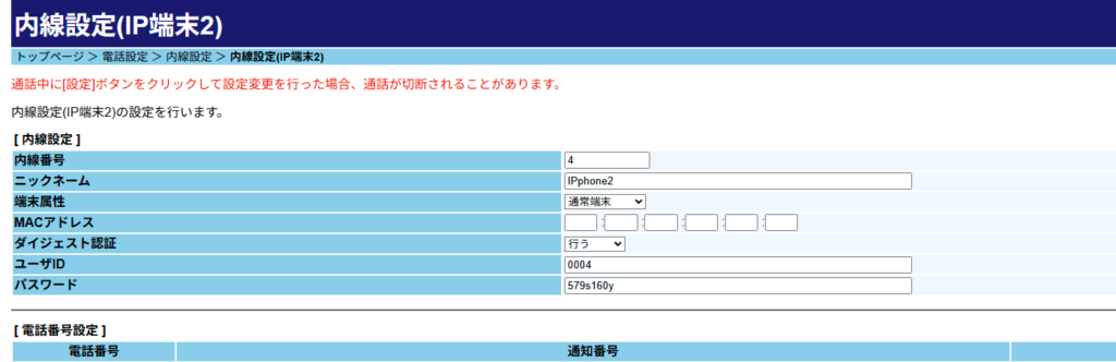- 説明:SIPサーバー認証用のパスワード