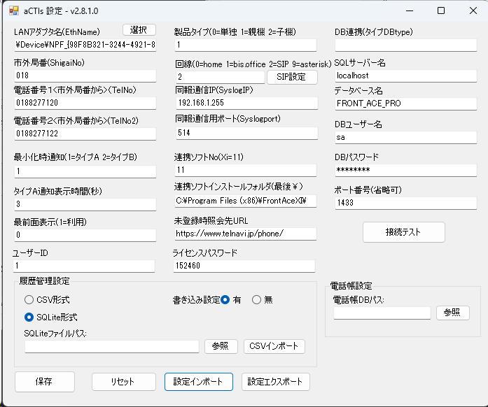 FRONT_ACE_PRO - 用途: 顧客情報、履歴管理用データベース
