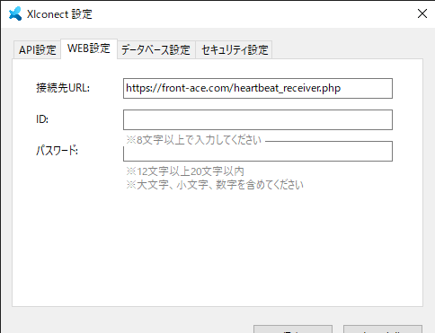 フロントエースデーターベースアクセスの設定です。