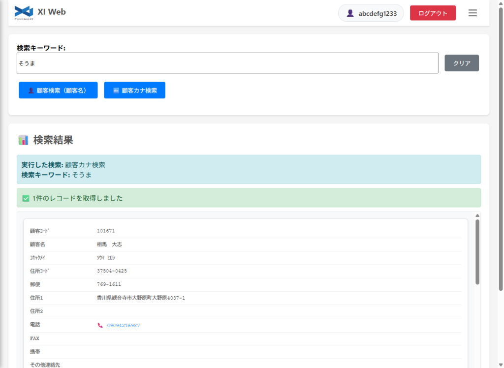現在、顧客検索と顧客カナ検索ができるようになってます。