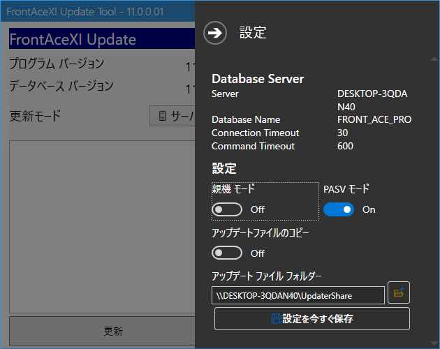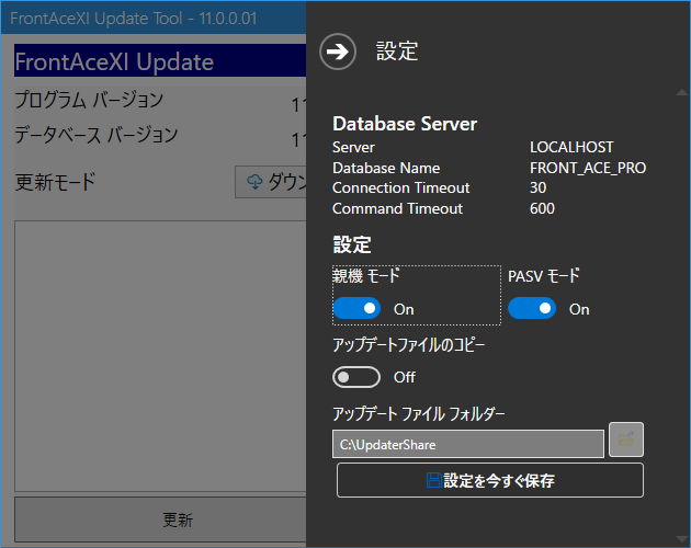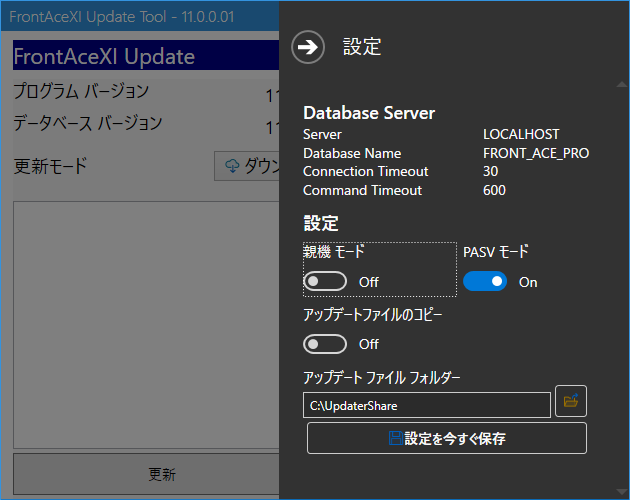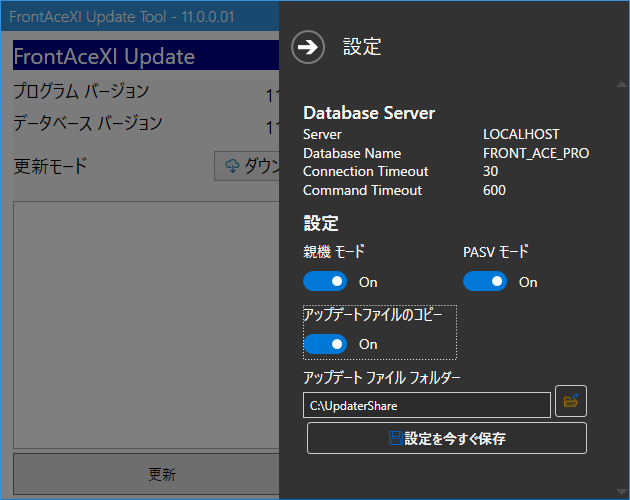 アップデートツールの歯車アイコンをクリックすると設定画面になります。