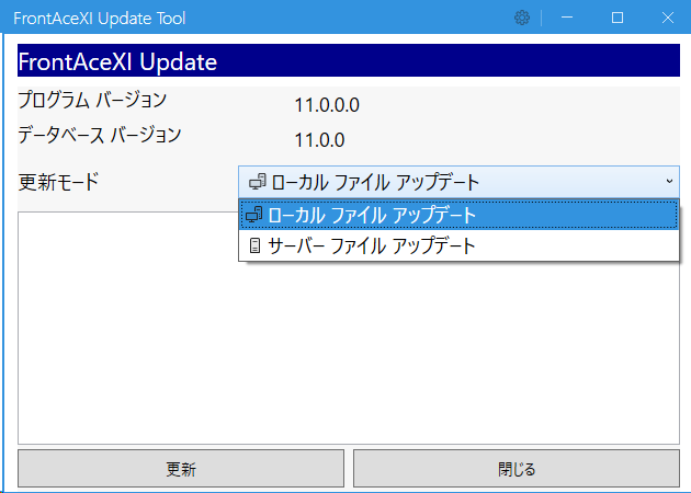 更新モードがダウンロードファイルアップデートの場合