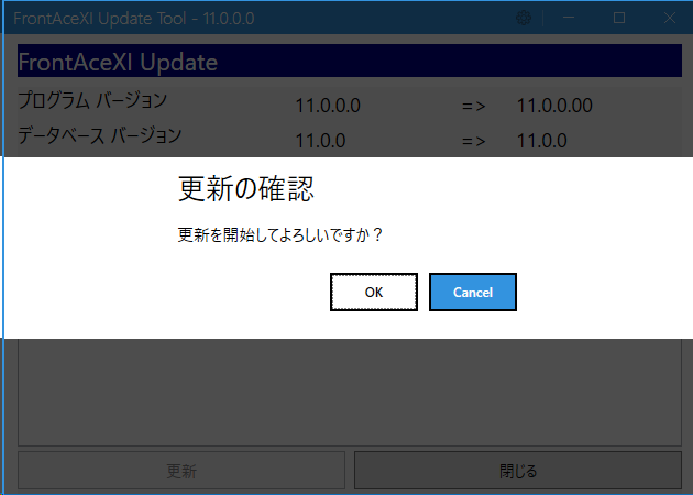 アップデートの確認画面になりますので
